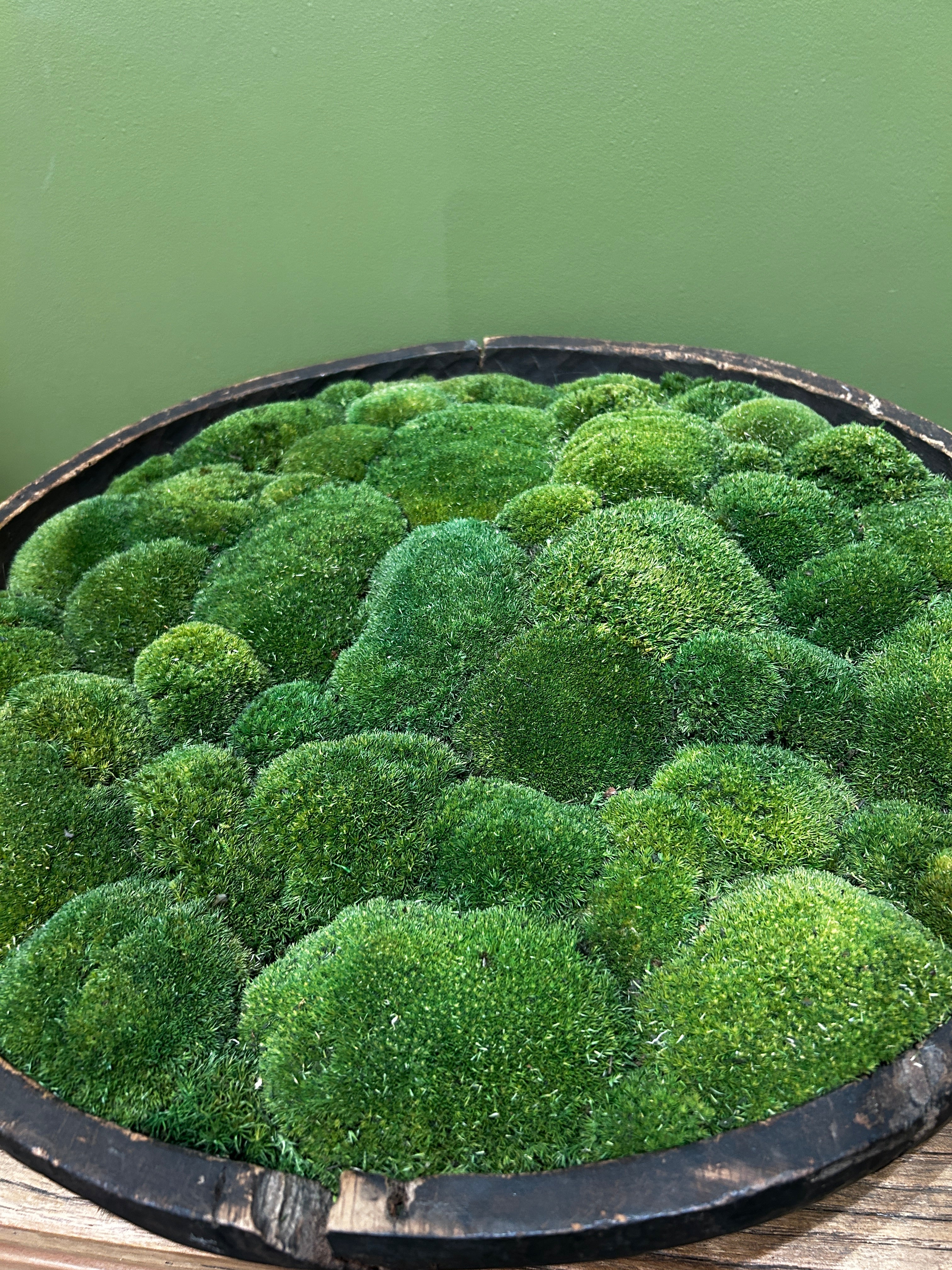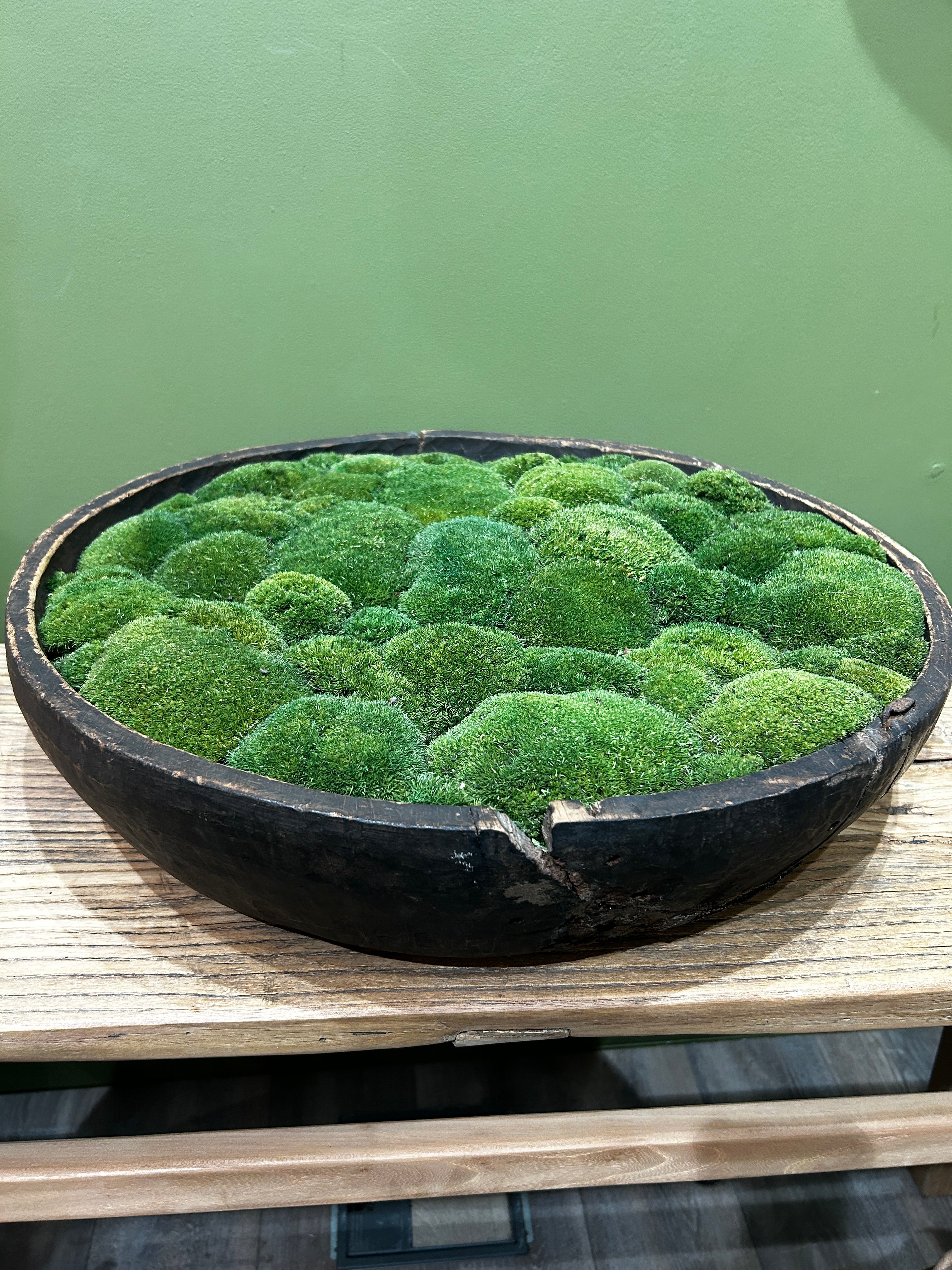 Vintage Wooden Bowl with added preserved moss placed by our own in house design team and does not require any water maintenance.