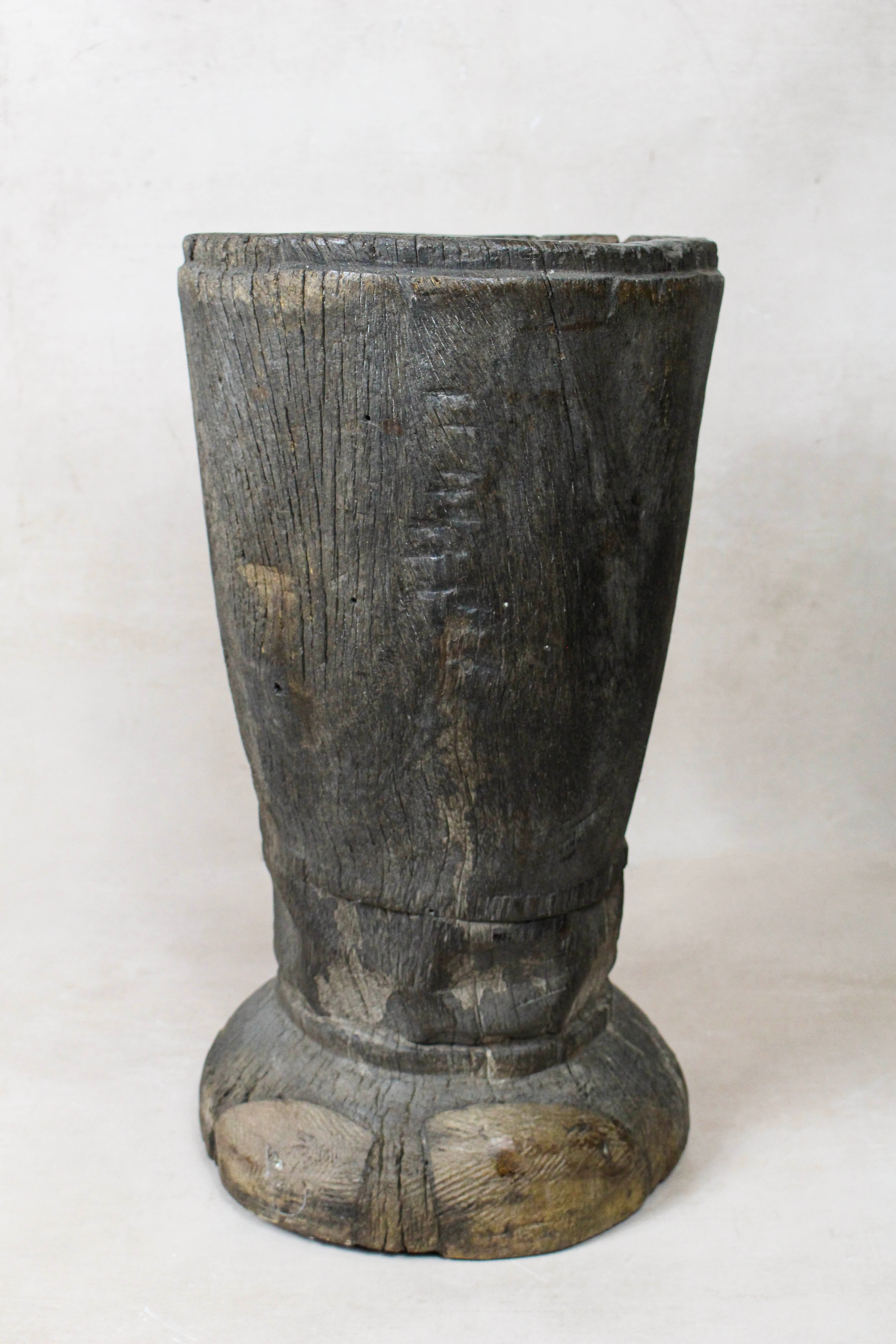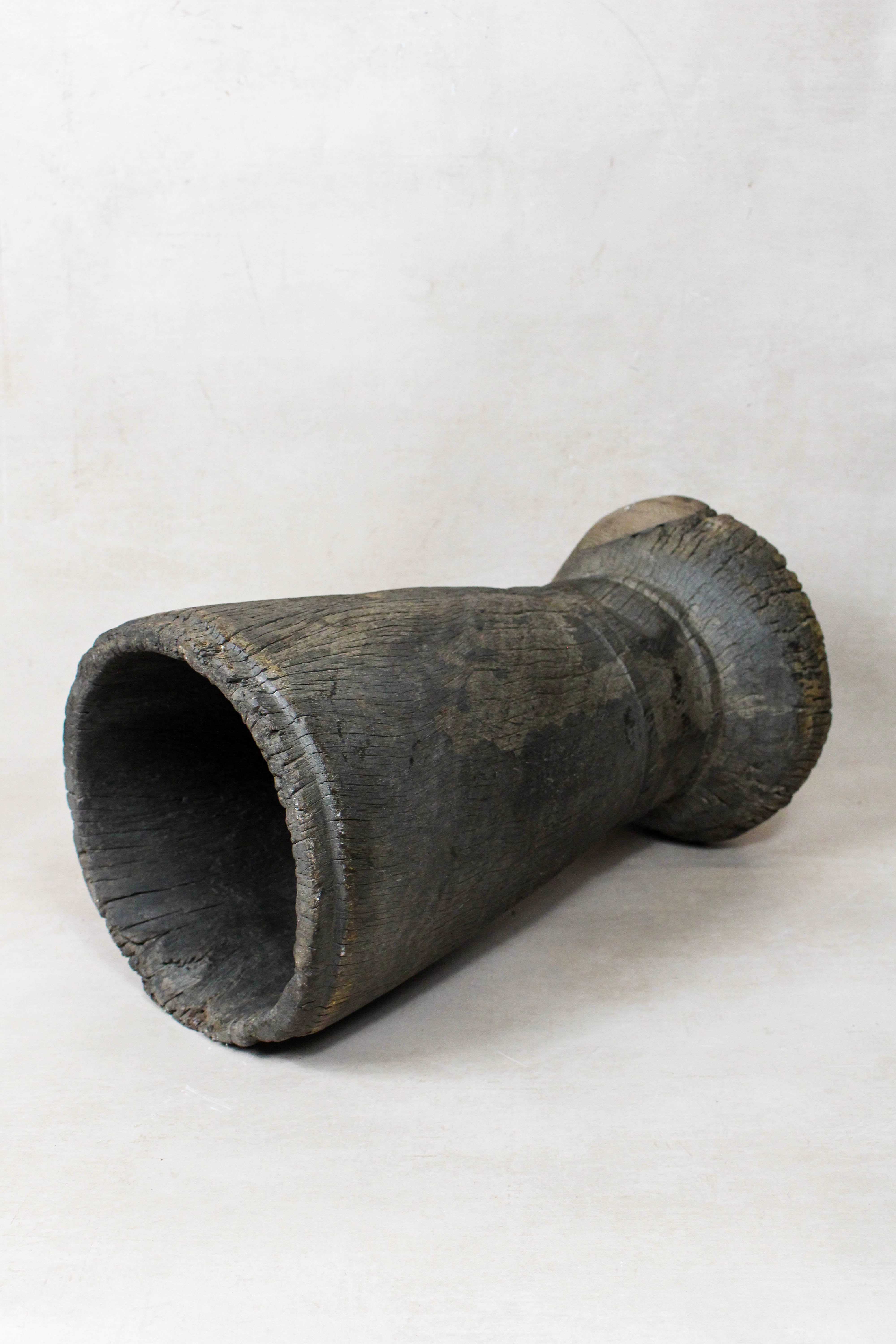 African grain stompers are made when they hollow out tree trucks and large branches to create these which are then used to grind grain. They can be used as planters or turn them upside down to be used as stools/ planters or simply standing as a piece of sculpture.