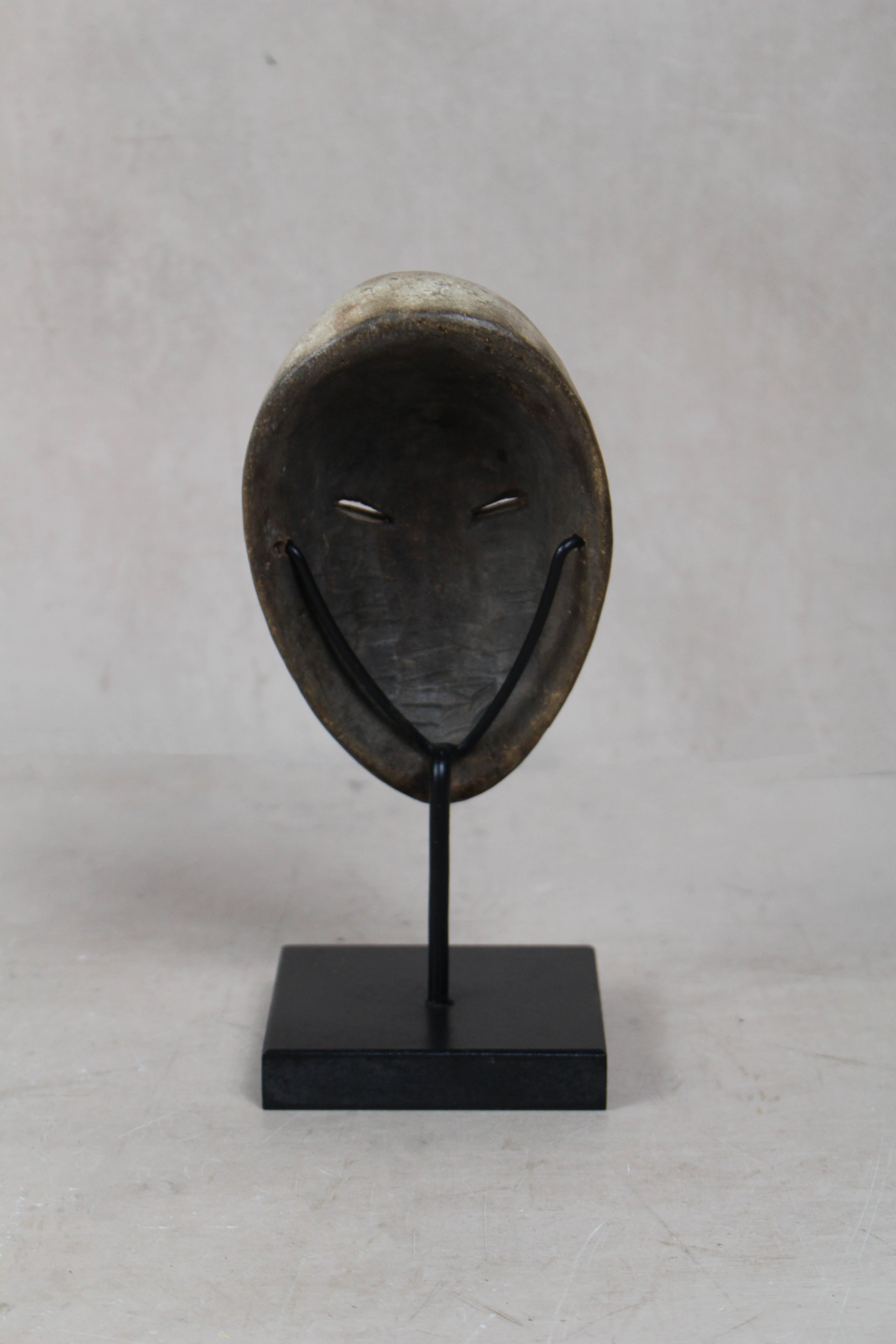 Well known for their reliquary figures the Fang also danced finely sculpted masks during a number of ritual activities. Among the Fang, white-painted masks identified with the Ngil society are known for their elegant abstractions of the human face. Ngil masks have been described as having a 'heart-shaped face' due to the facial features emphasizing refined curves of the orbital ridges above the eyes and the prominent line of the long tapering nose that ended above a discretely mouth carved at the bottom of the chin that completes the abstraction of the face. The Fang people used masks in their secret societies. Members of this male society wore the Ngil masks during the initiation of new members and the persecution of wrongdoers. Masqueraders, clad in raffia costumes and attended by helpers, would materialize in the village after dark, illuminated by flickering torchlight.