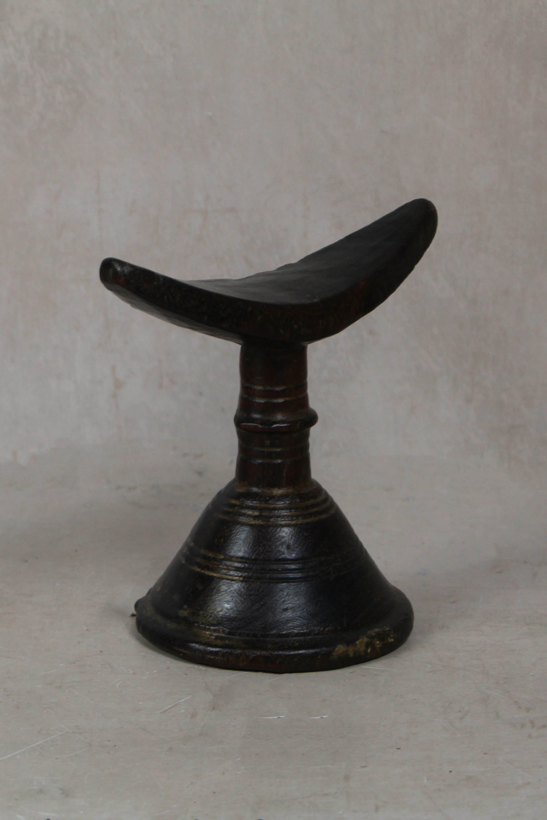 These solid wood Headrests are from groups in southern Ethiopia used to enable people to sleep without interfering with their complicated coiffure (hairstyles). Hairstyles frequently declare their owner's age, gender and status, and are often embellished by accoutrements of a magic-religious nature. Hairstyles therefore need protecting. The headrest also plays a role in nuptial ceremonies.