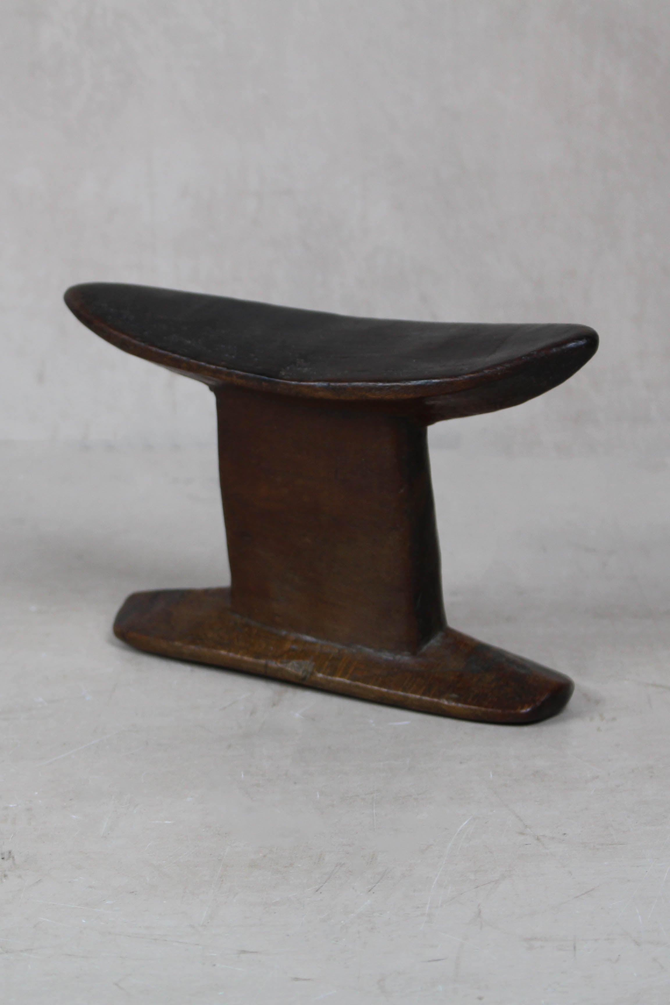 These solid wood Headrests are from groups in southern Ethiopia used to enable people to sleep without interfering with their complicated coiffure (hairstyles). Hairstyles frequently declare their owner's age, gender and status, and are often embellished by accoutrements of a magic-religious nature. Hairstyles therefore need protecting. The headrest also plays a role in nuptial ceremonies.
