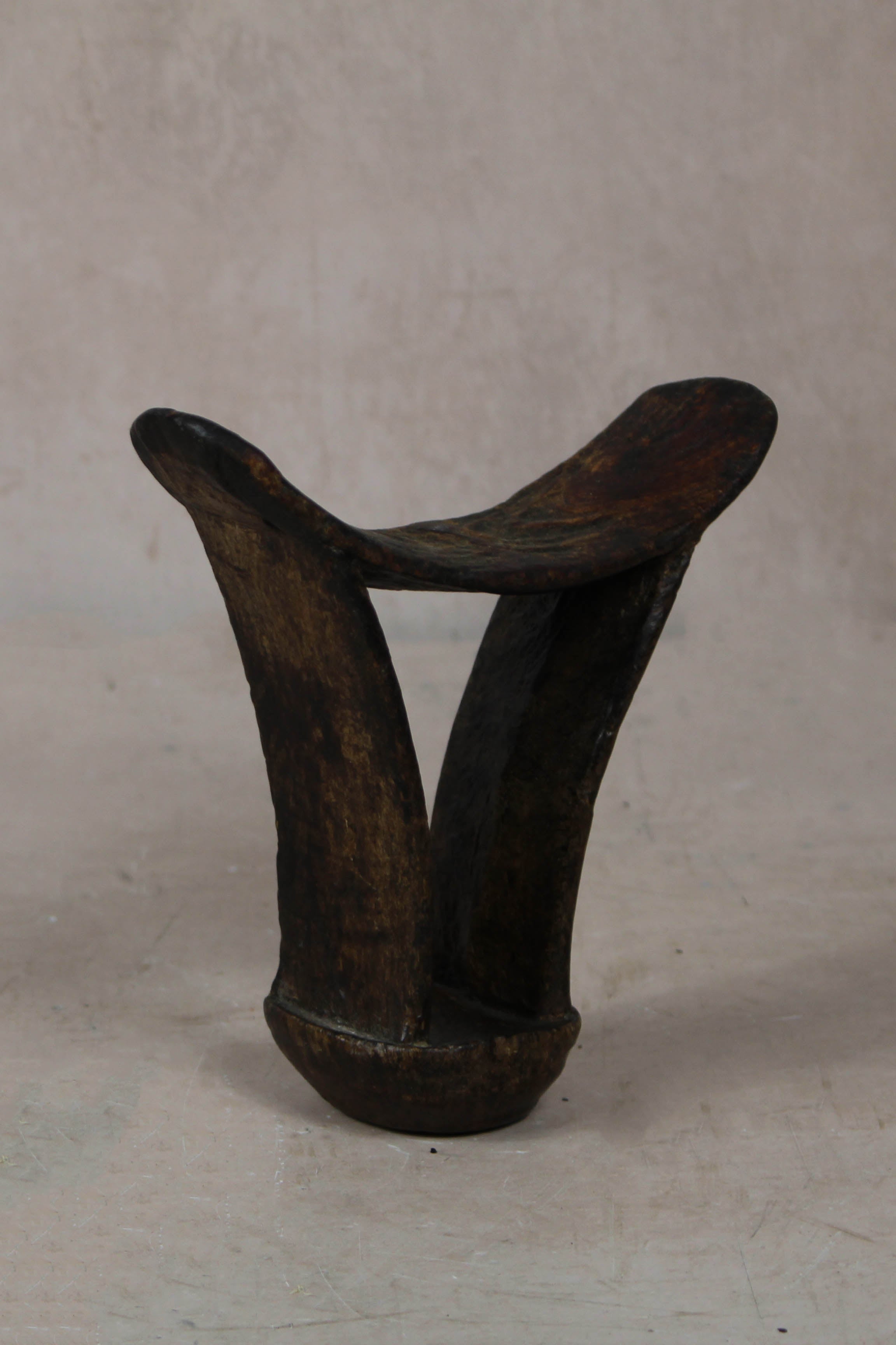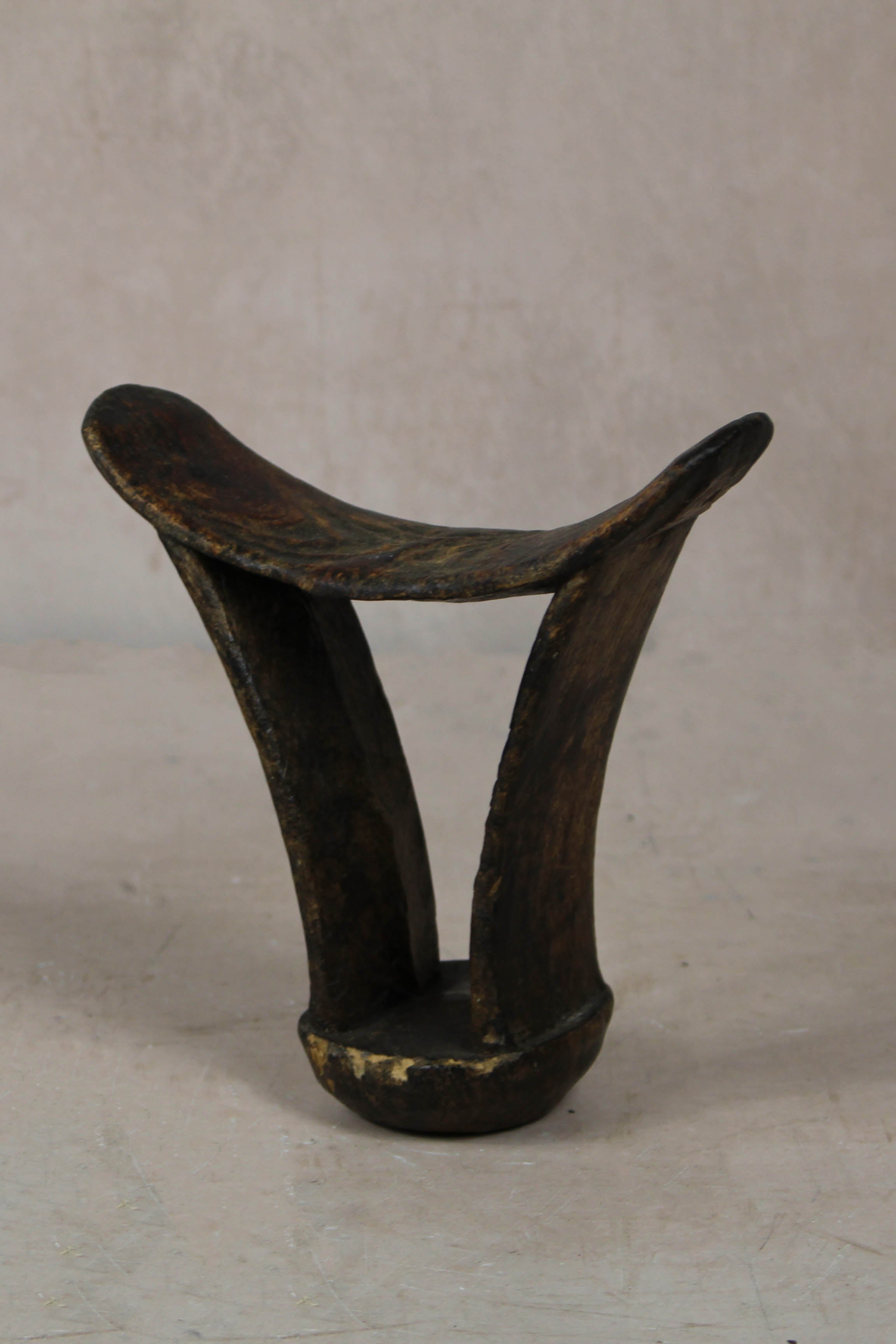 These solid wood Headrests are from groups in southern Ethiopia used to enable people to sleep without interfering with their complicated coiffure (hairstyles). Hairstyles frequently declare their owner's age, gender and status, and are often embellished by accoutrements of a magic-religious nature. Hairstyles therefore need protecting. The headrest also plays a role in nuptial ceremonies.