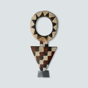 The mask is made from a flat plank of wood and is one of Africa’s largest masks. Hand painted and is still used today in many festivities.