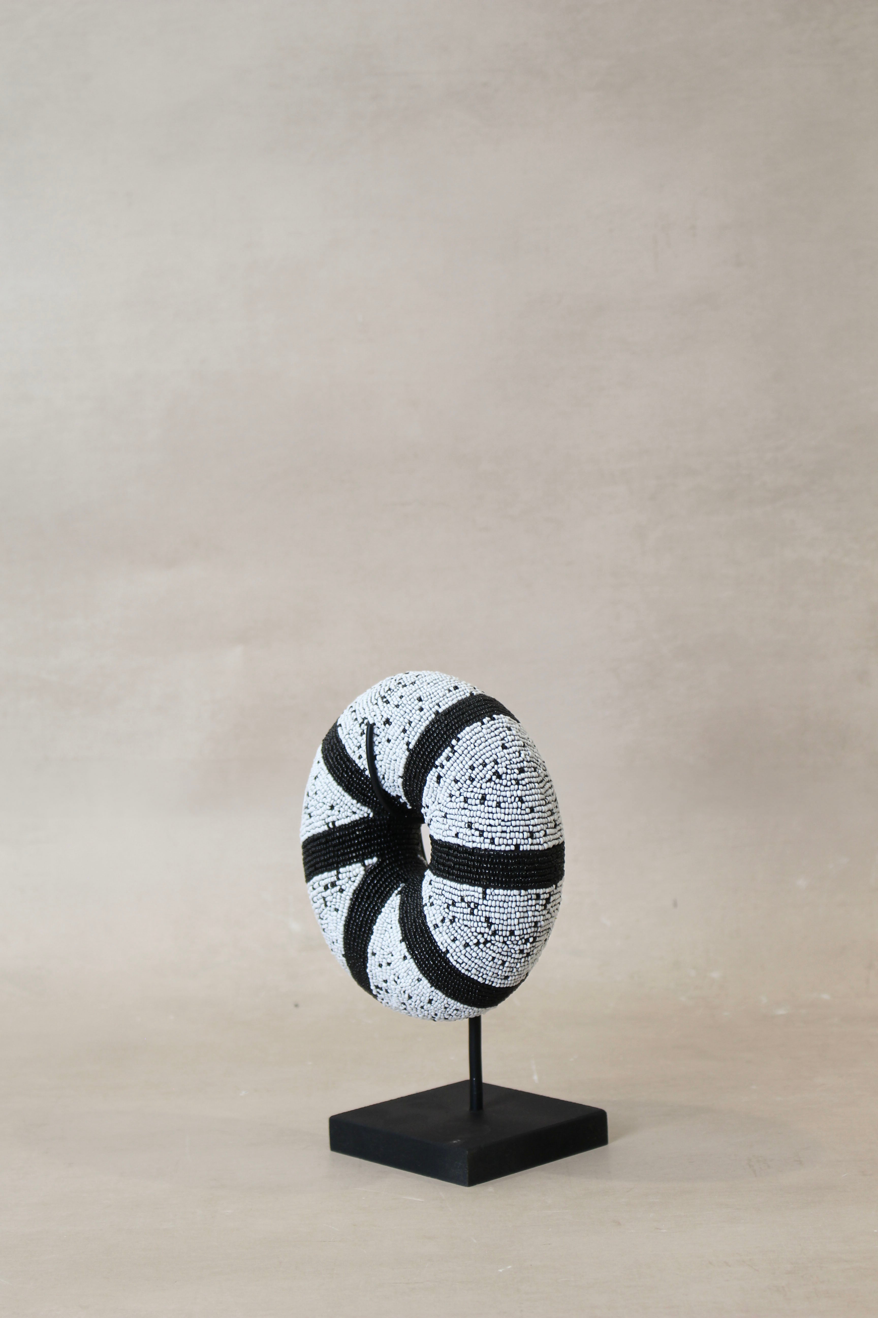 These beautiful handmade donut ring shaped bracelets are made by the Bameleke people in Cameroon. The bangle is made from clay and then embellished with glass beads.