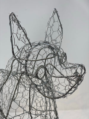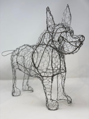 A hand crafted dog sculpture similar to a terrier breed made in South Africa by a local artist. Made from galvanised steel wire.