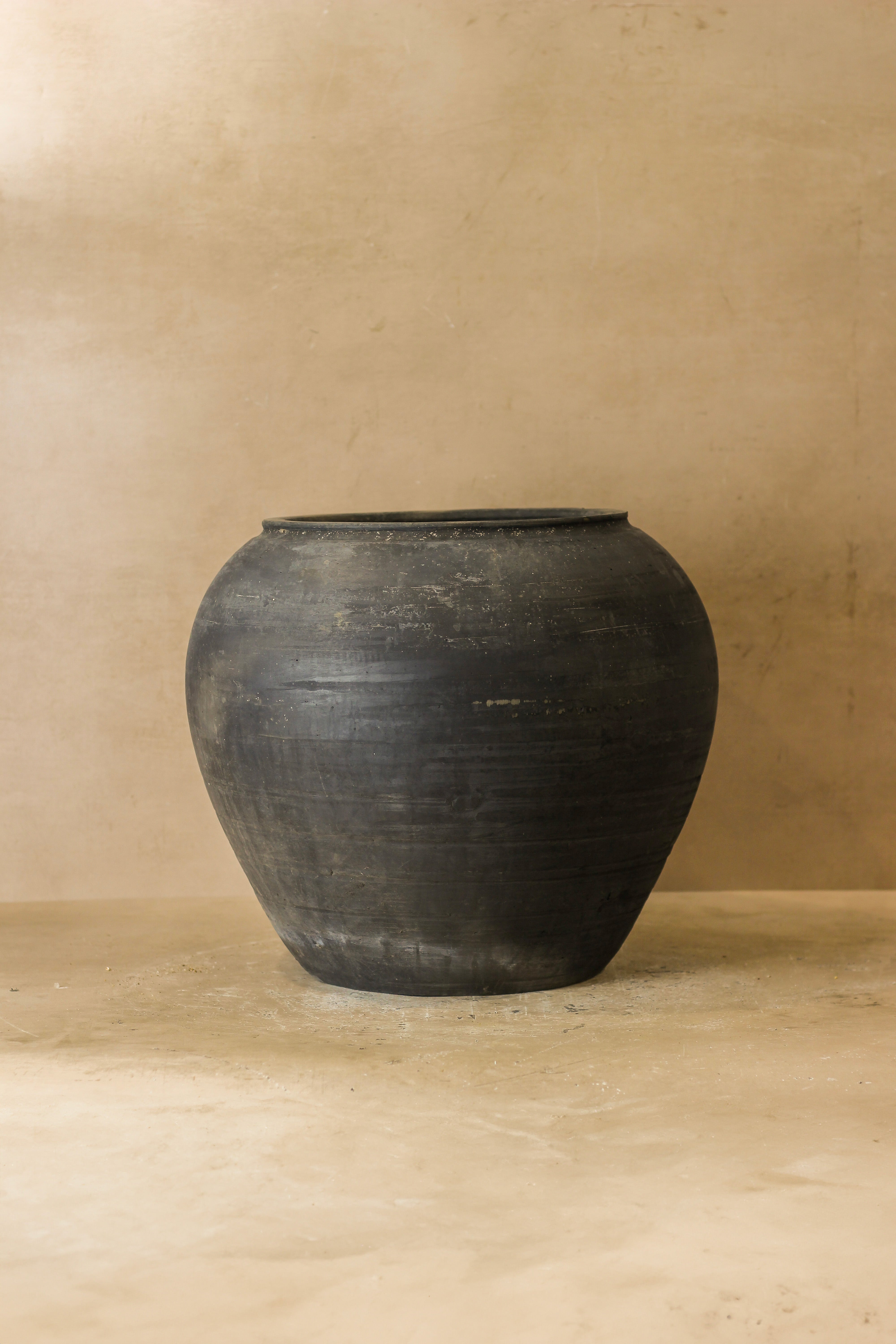 Add character and history to your space with the Vintage Dark Pot, a stunning piece of decor that combines rustic charm with lasting elegance. This unique, handcrafted pot boasts a rich history and timeless design, making it the perfect addition to any eco-conscious home. Whether used as a decorative accent or a planter, its vintage appeal and high-quality craftsmanship will elevate any room. The pots have a beautiful patina due to age and from the Shanxi province crafted c. 1950's.