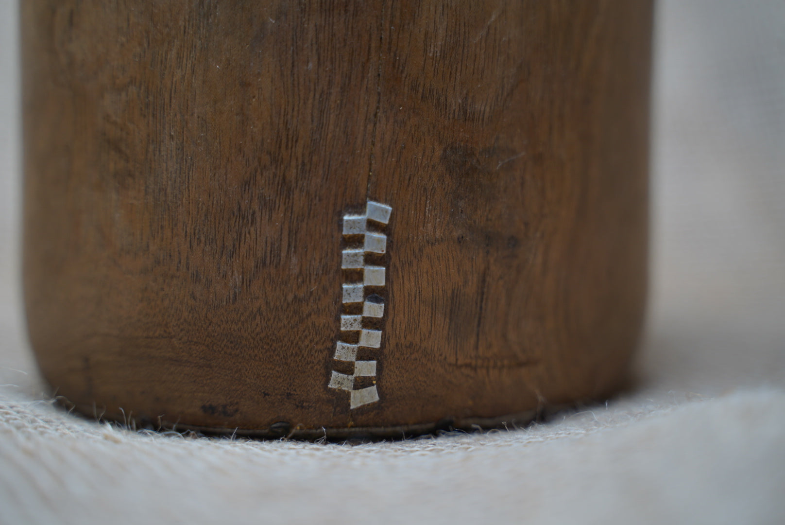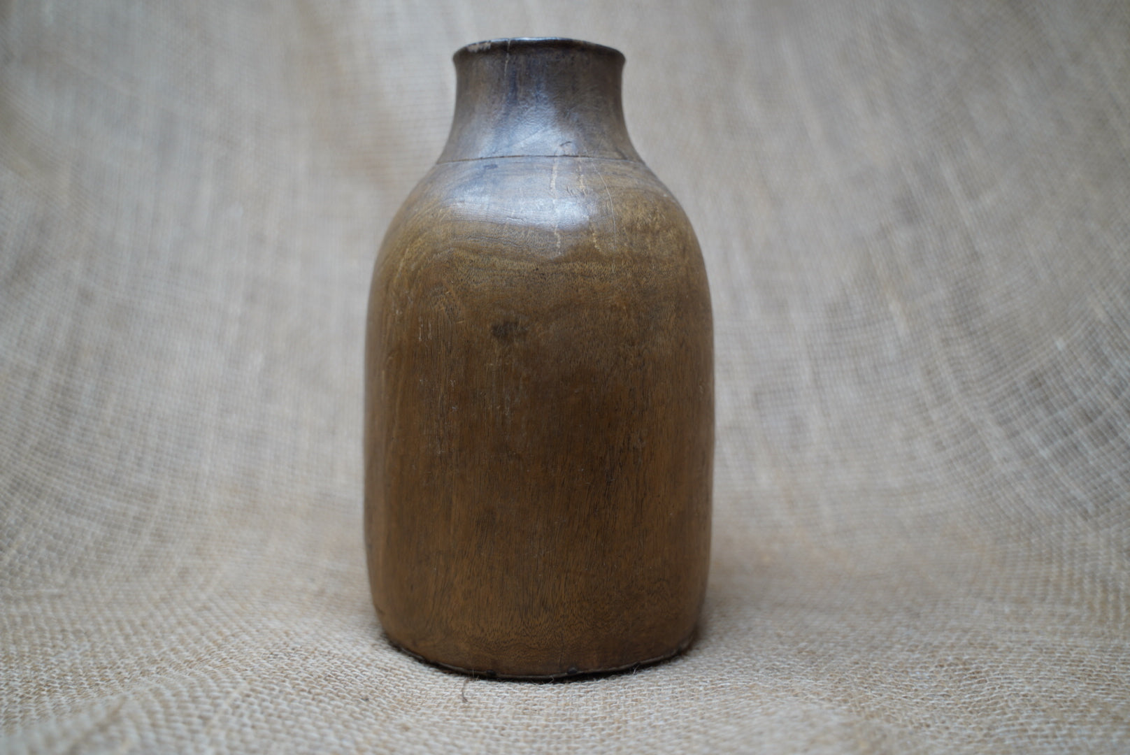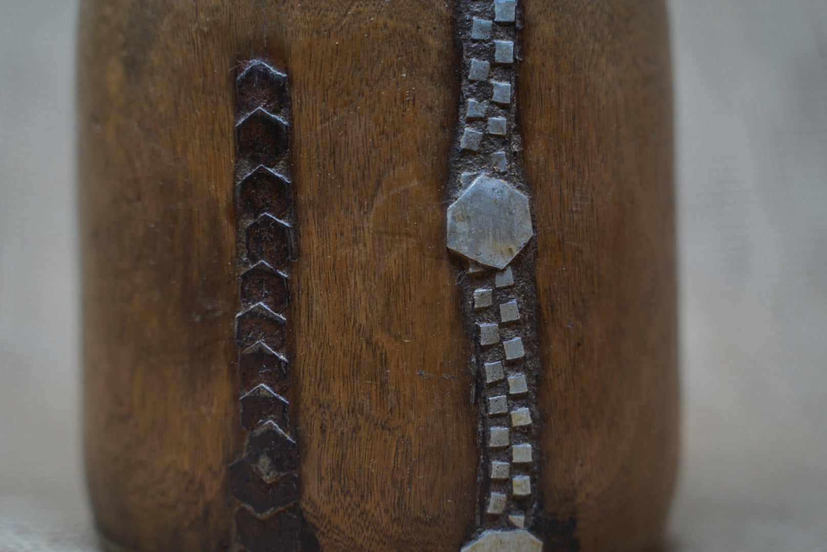 These ornate milk containers are masterfully hand-carved from a singular block of wood and accentuated with tin embellishments. These time-honored vessels have served as indispensable tools among the Tutsi people of Rwanda, as well as nomadic communities in the rural hinterlands of Burundi, Kenya, and Northern Tanzania. Originally devised for the conveyance of milk, water, honey, and provisions, these containers exude a versatile practicality.